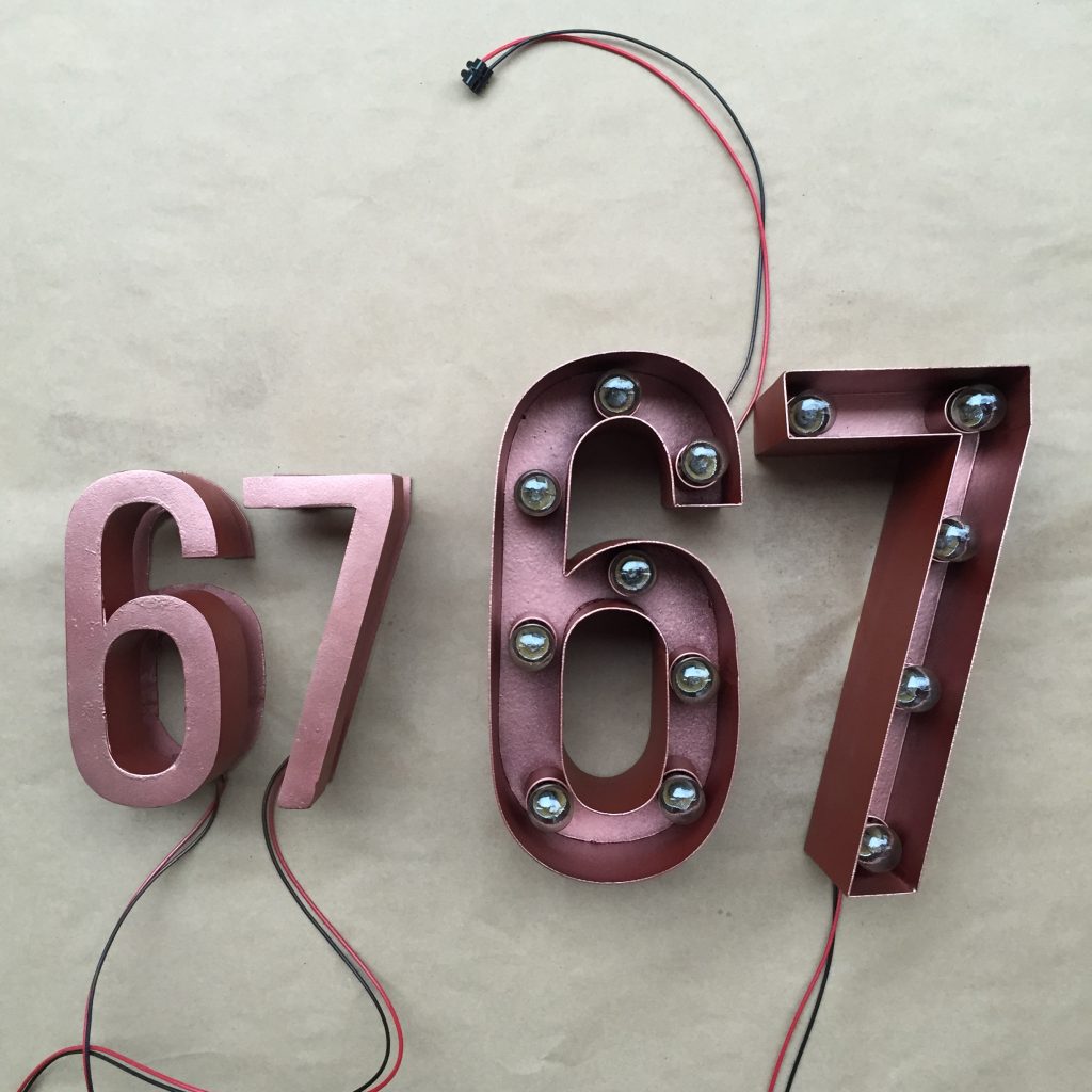 Cifre volumetrice din metal (otel) cu becuri, strat anticoroziv / finisaj vopsea / strat de protectie.