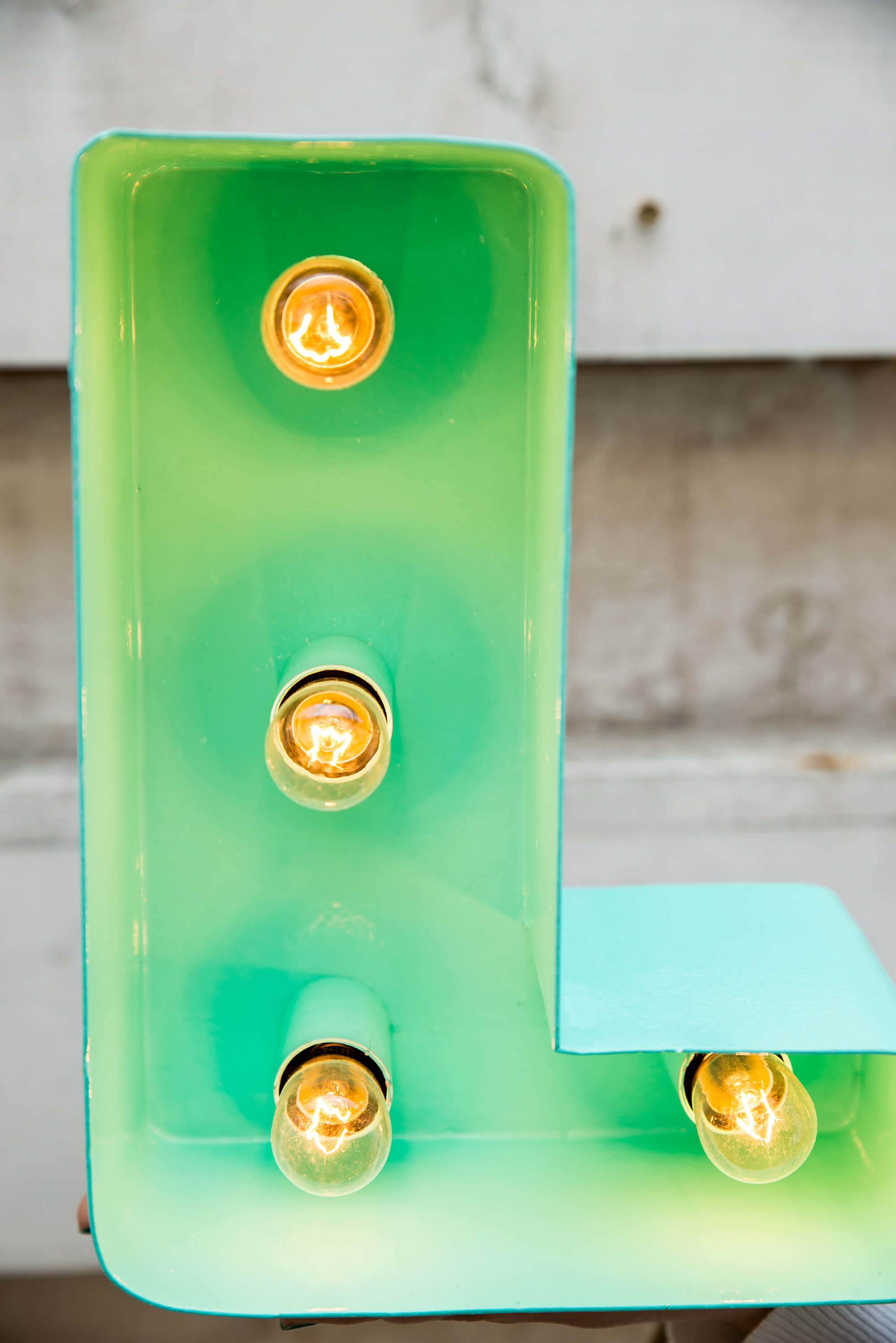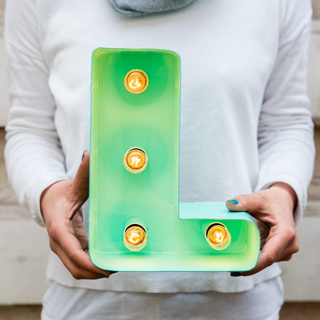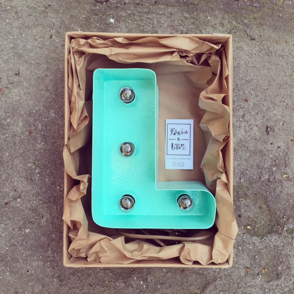 Litera volumetrica din metal (otel) cu becuri, strat anticoroziv/ finisaj vopsea / strat de protectie.