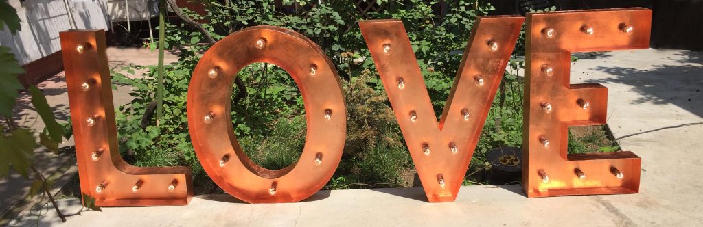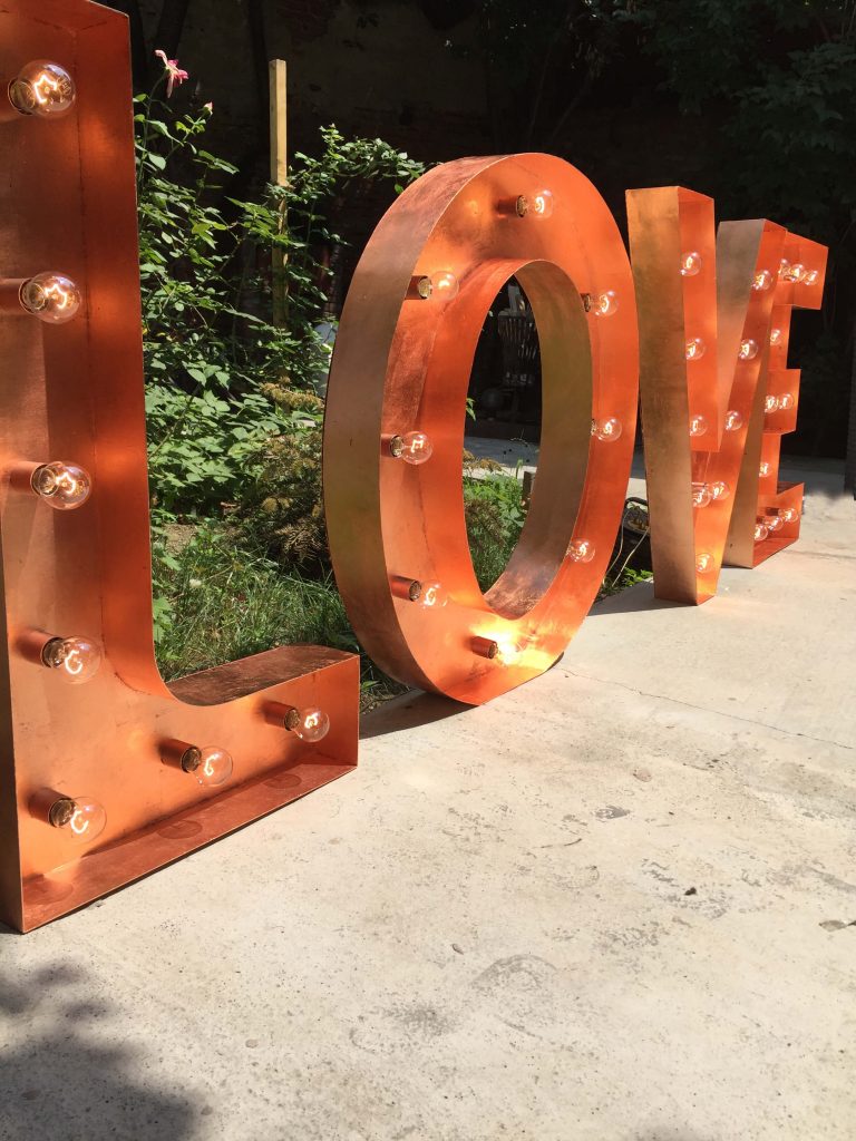 Litere volumetric din metal (otel) cu becuri, strat anticoroziv /  aplicatie integrala cupru / strat de protectie.