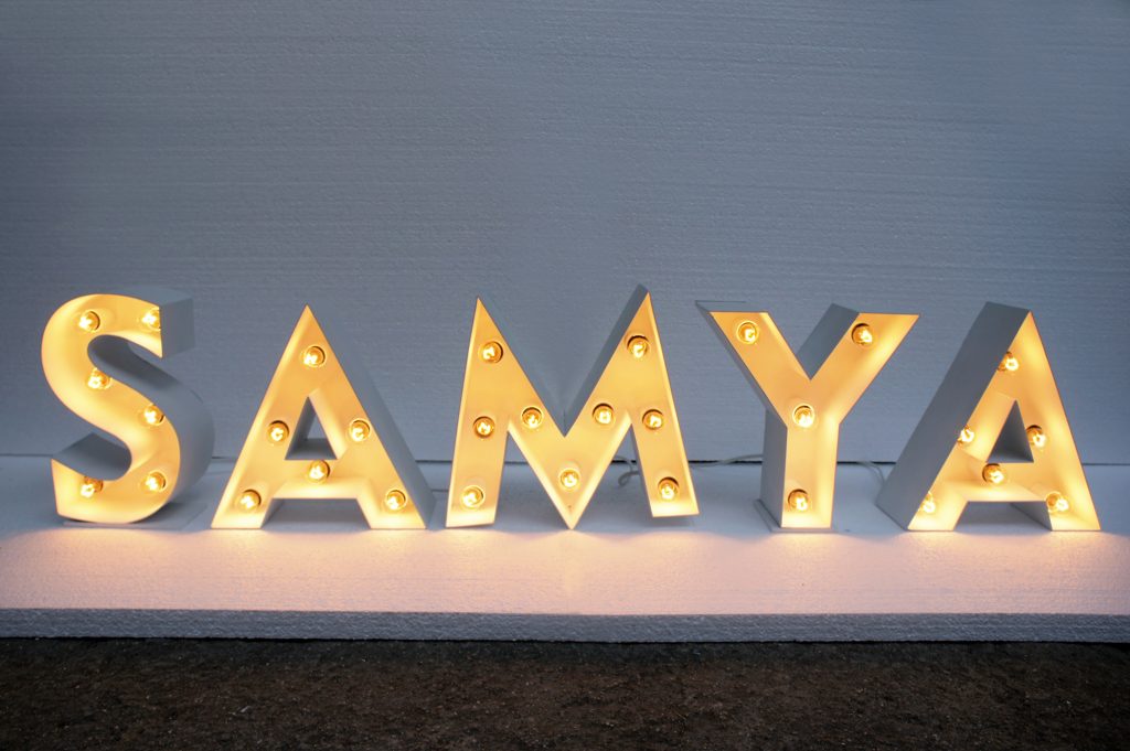 Cuvant volumetric din metal (otel) cu becuri, strat anticoroziv / strat de protectie / finisaj vopsea.